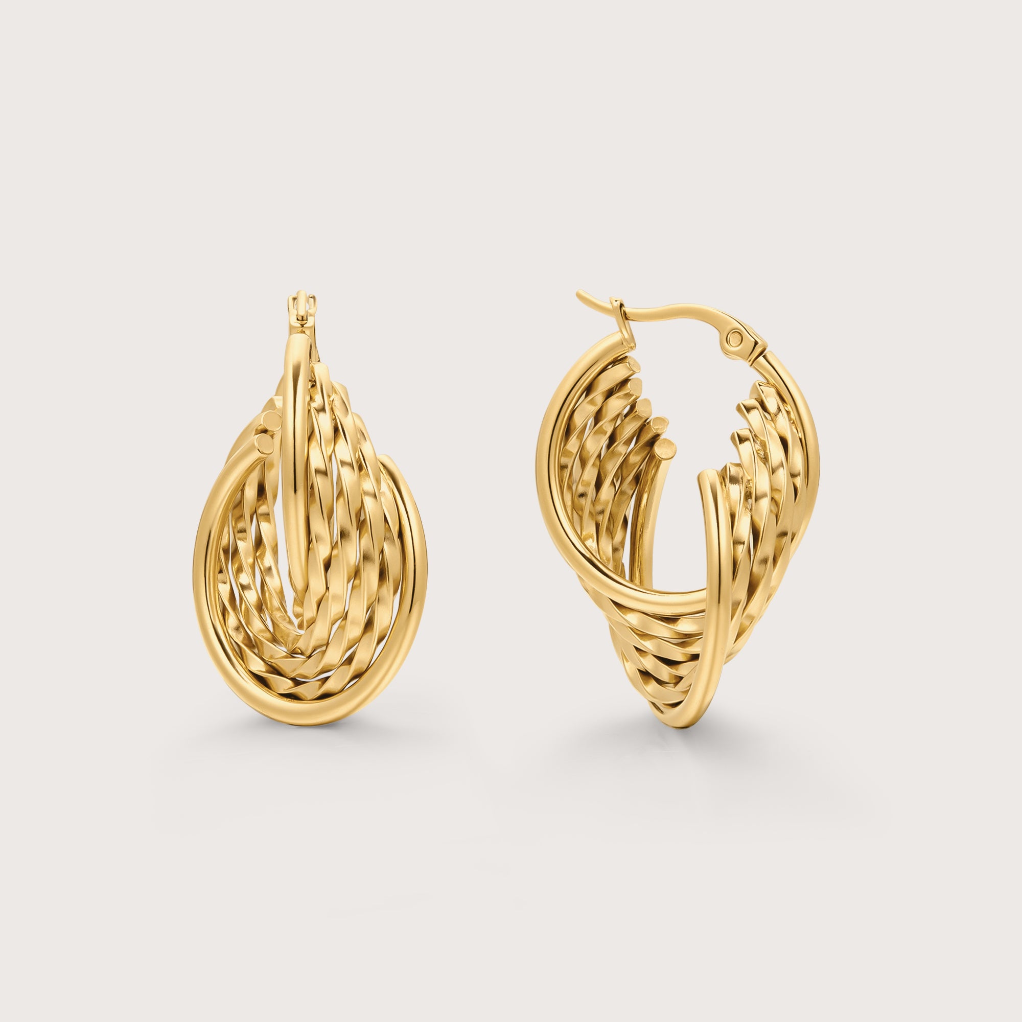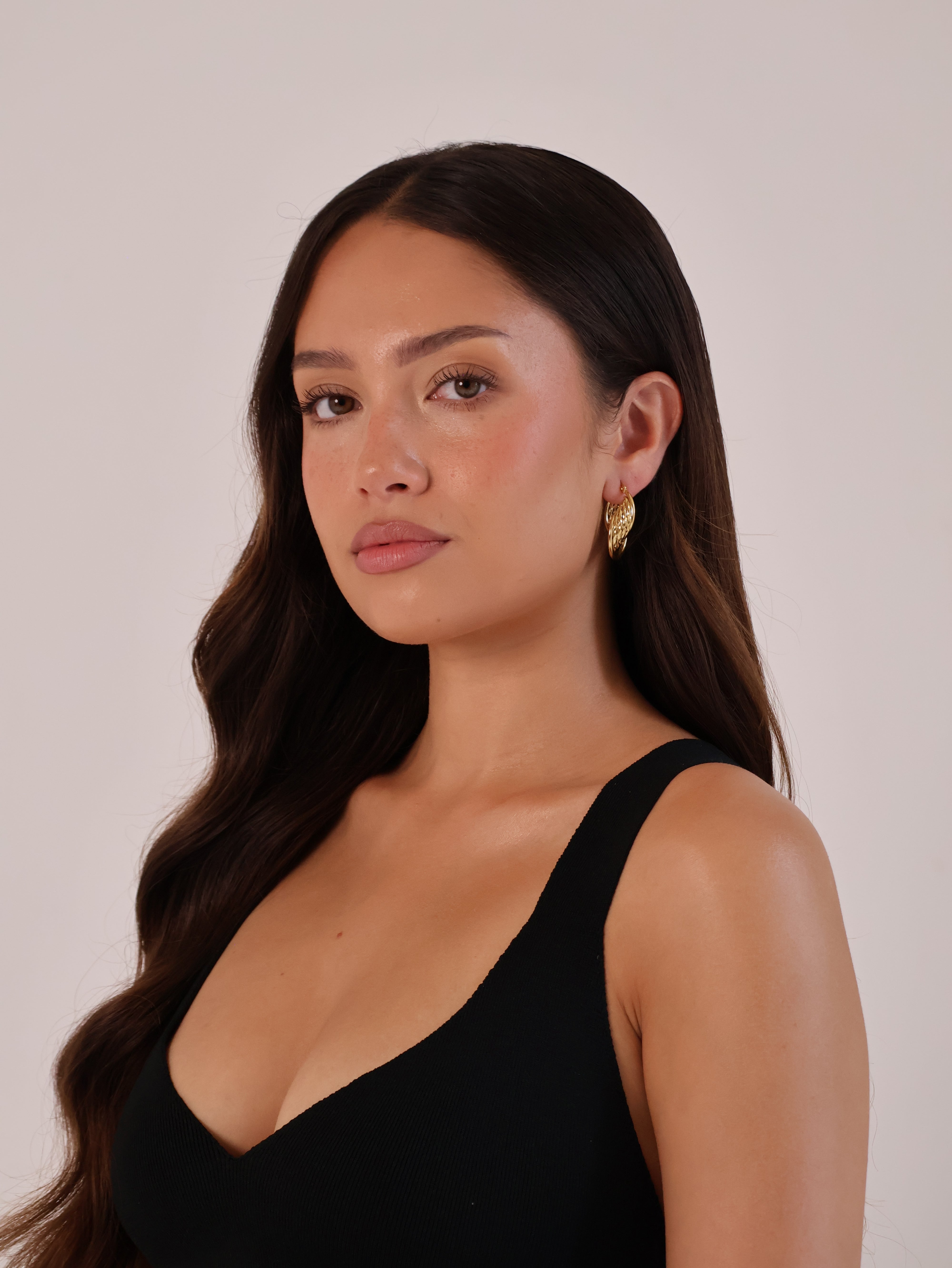 The basket twist hoop features an intricate twisted design and basket hoop design for the perfect daily wear statement hoop.