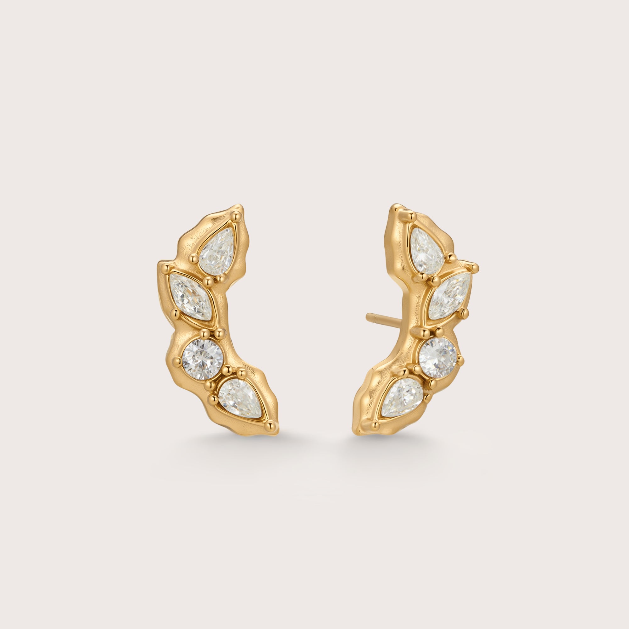The quartet cluster earrings features a cluster of four asymmetrical stones. Perfectly paired with the cluster trio earrings and the cluster duo earrings.
