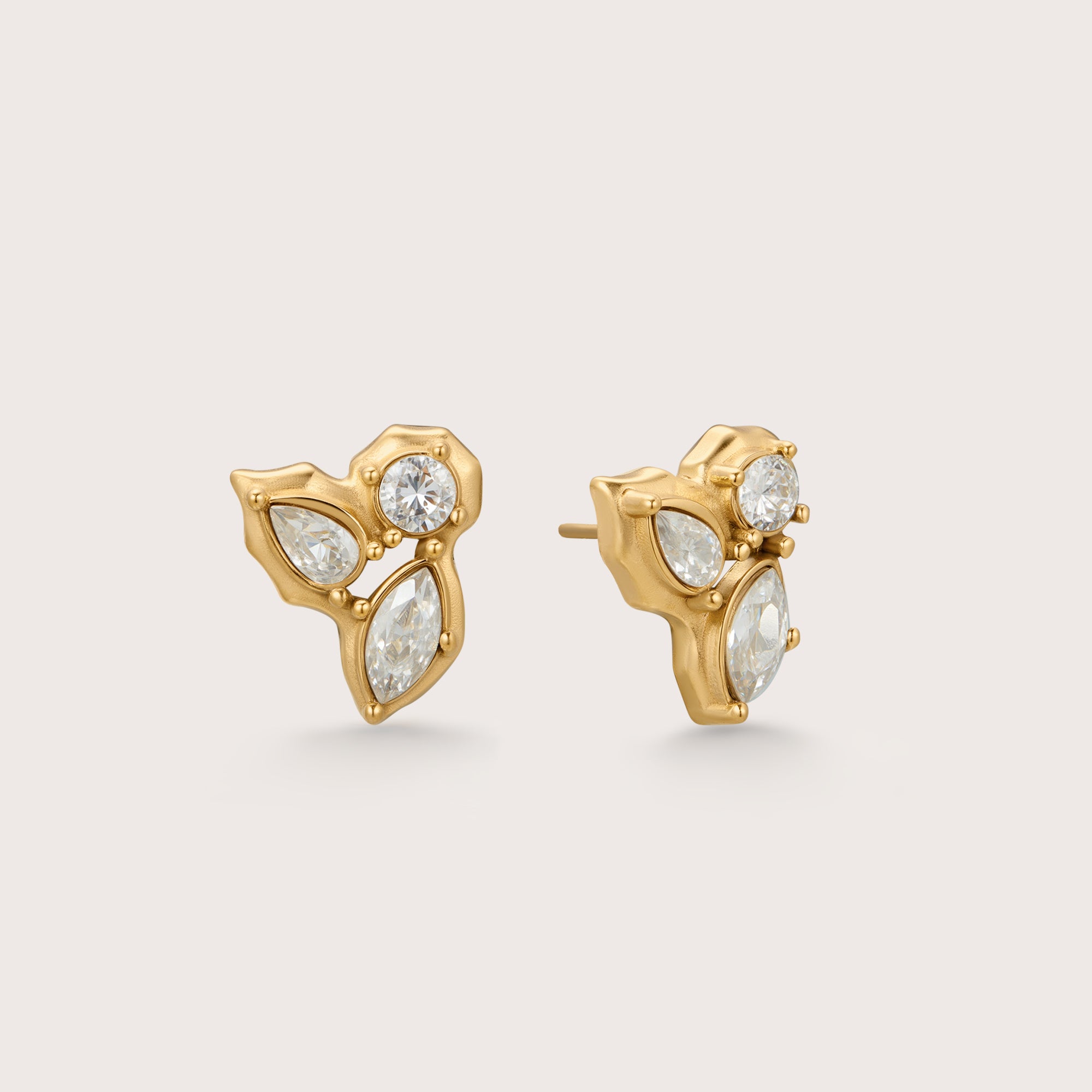 The quartet cluster earrings features a cluster of four asymmetrical stones. Perfectly paired with the cluster trio earrings and the cluster duo earrings.